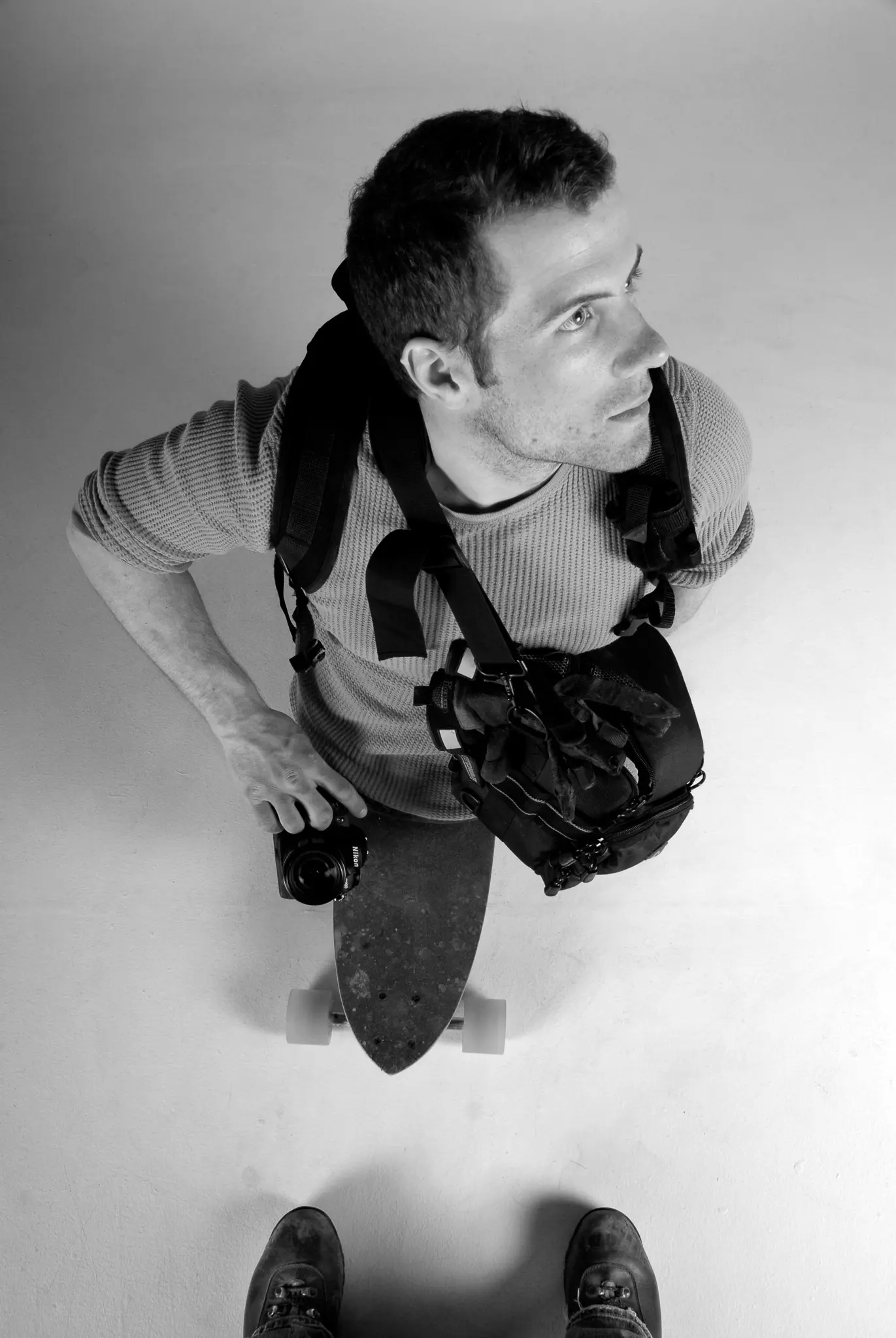 The way he travels is inseparable from the way he makes art. Both run on curiosity, light planning, and an openness to whatever comes. Connolly travels with a loose plan. Book the first bed, learn a few greetings, skim local news and pop culture so conversations come easily. Airports can test anyone so he packs light leaving space for things picked up along the way. He carries just a backpack and his skateboard, which weighs about eight pounds, slips through train doors, and repairs easily with standard skate parts. At home in North America, he uses a titanium wheelchair he’s had since 2003. Baggage handlers once dropped it from a plane. It bounced. A drop like that would wreck most chairs, but his was built to last.