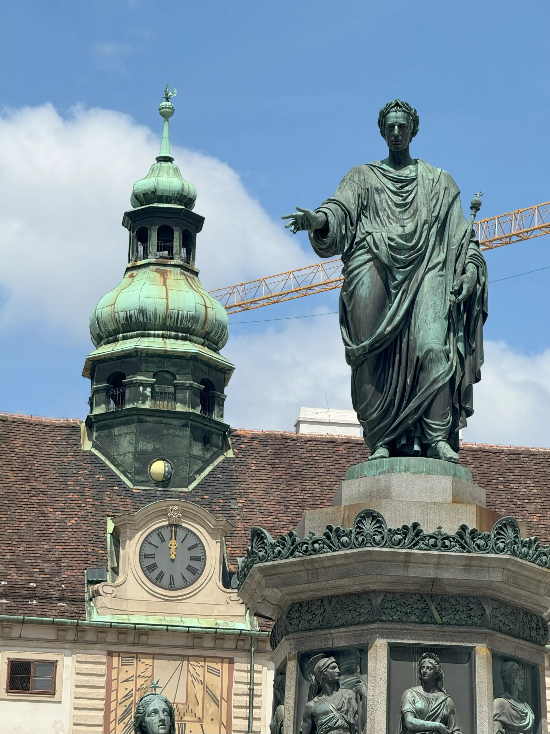 While admiring them for their beauty has merit, knowing the history makes them more interesting. I think of the Plague Column– the Pestsäule – near the St Stephansplatz — dedicated to the Trinity, thanking God for saving Austria from the plague. (Take a look at the king’s protruding chin, a sign of the inbreeding in that family. You can see it in other works of art (busts and paintings in the Kunsthistorisches.)