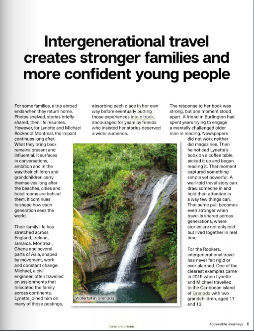 The response to her book was strong, but one moment stood apart. A friend in Burlington had spent years trying to engage a mentally challenged older man in reading. Newspapers did not work neither did magazines. Then he noticed Lynette’s book on a coffee table, picked it up and began reading it. That moment captured something simple yet powerful. A well-told travel story can draw someone in and hold their attention in a way few things can. That same pull becomes even stronger when travel is shared across generations, where stories are not only told but lived together in real time.