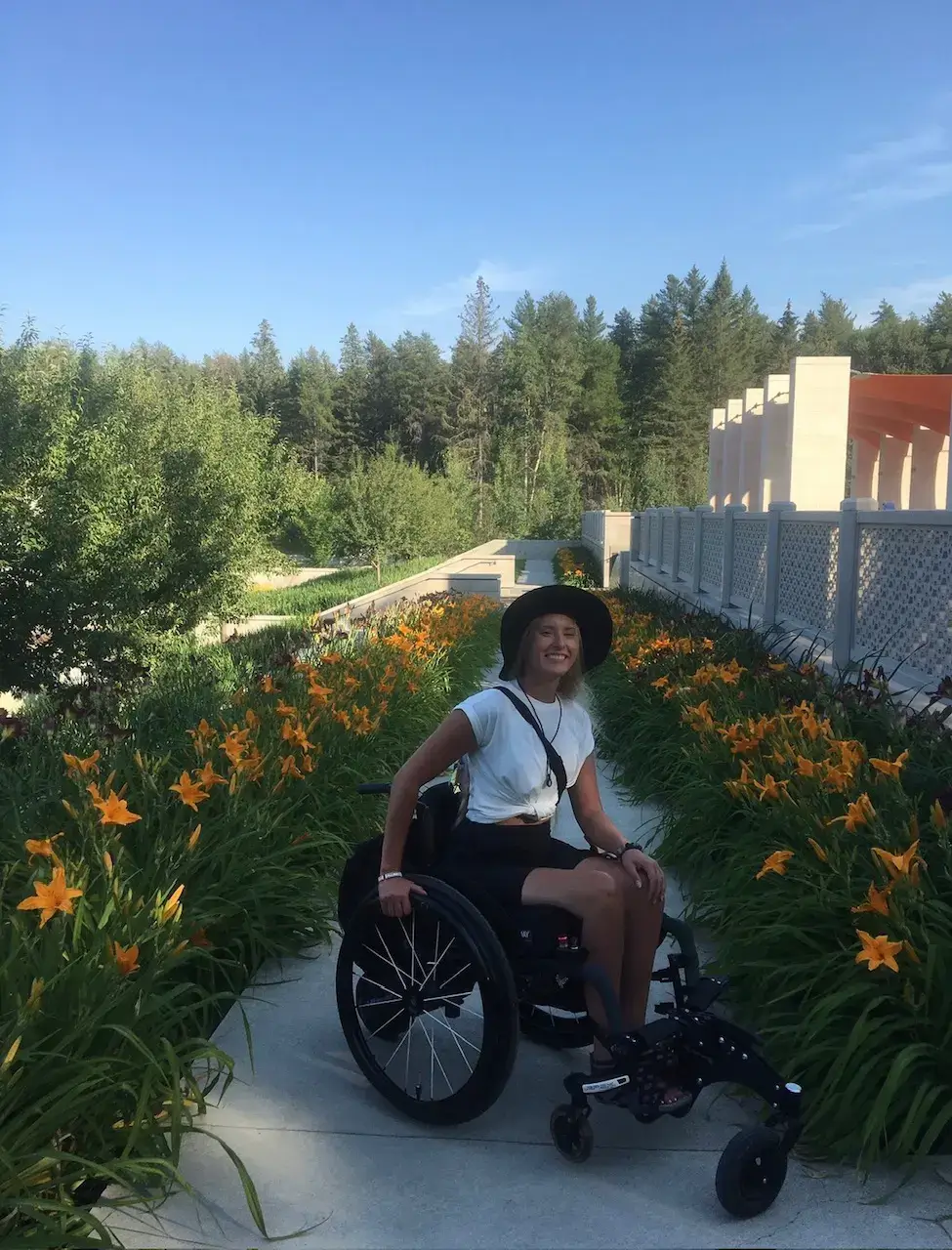 Sport played a significant role in rebuilding her confidence, particularly when it came to travel. Her first flight as a wheelchair user happened in November 2021, when she travelled with her sledge hockey team to New Jersey. Before the trip, she felt overwhelmed by the idea of flying in a wheelchair and managing the process for the first time. Having her teammates around, along with her father, made the experience manageable and eased the anxiety of being singled out or stared at. Travelling with other wheelchair users helped normalize the experience and showed her that the process could be handled.