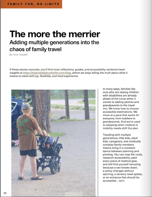 Traveling with multiple generations, little kids, adult kids, caregivers, and medically complex family members means living in a constant dance between planning and pivoting. You can map the route, research accessibility, pack every piece of medical gear, and still find yourself rerouting because a van breaks down, a policy changes without warning, a sensory need spikes, or an entrance that should be accessible… isn’t.
